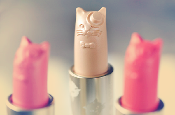 Szminki. Można powiedzieć, że są to szminki, po których z radością buszowała cała banda malutkich kociaków – w całości pokryte są śladami mini łapek. Wygląda to przeuroczo! ♥